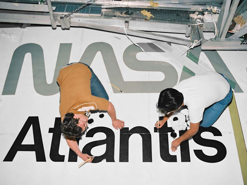 Thinking about branding at the moment and was reminded of this great photo of painting Atlantis name onto the space shuttles wing. Back when NASA was still using the ‘worm logotype’. Unit editions have printed the guidelines in their ‘Manual 1 Design & Identity Guidelines.’ NASA have also shared the guidelines here.